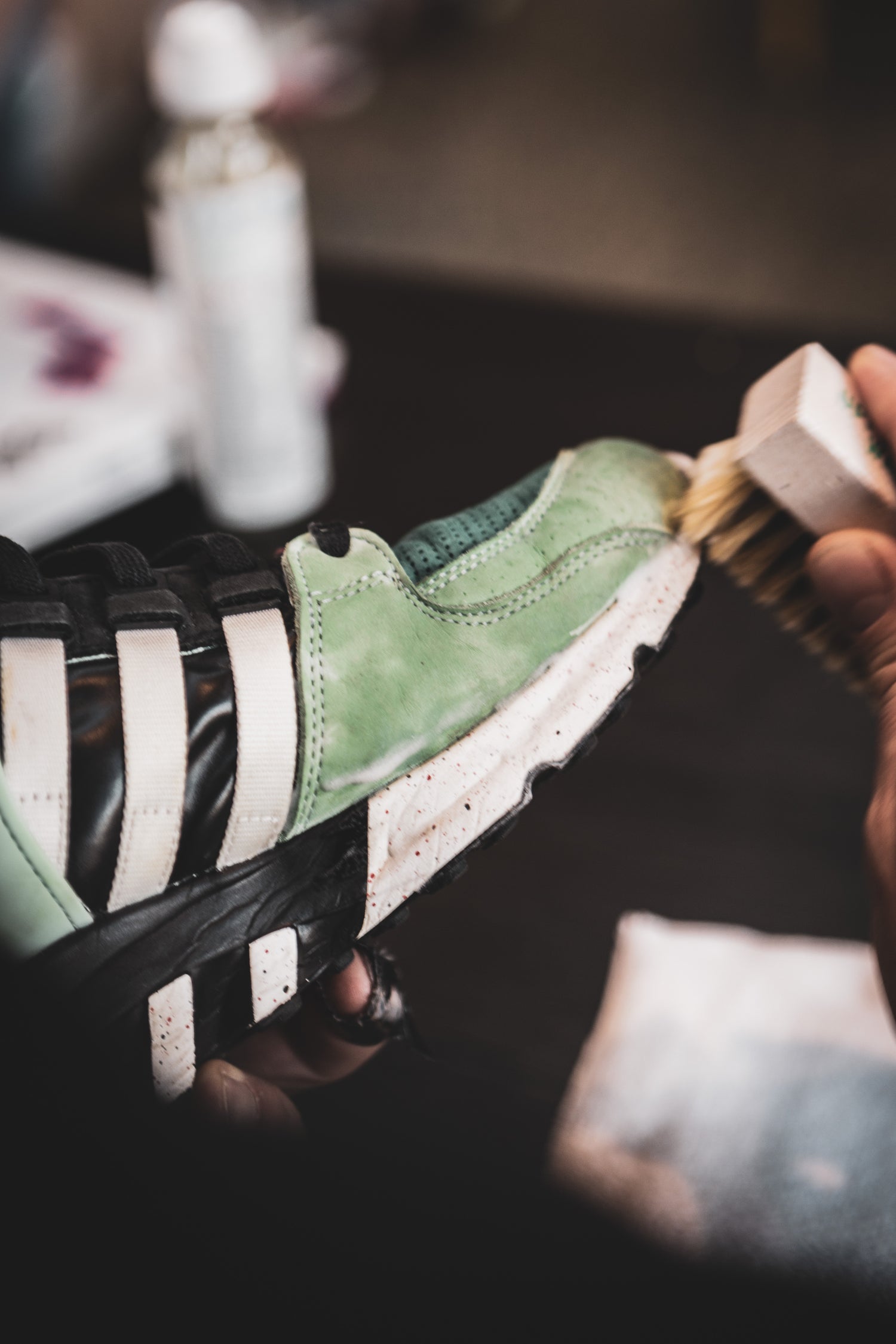 Nach der Reinigung beginnt die eigentliche Arbeit und zwar die Pflege: Bürsten, Farbe auffrischen, Leder nähren, Versiegeln.